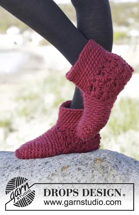 DROPS Hausschuhe mit "Polaris" mit Sternchenmuster und Kettenstichen häkeln. Größe 38 - 43.