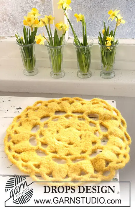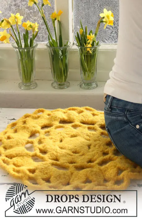 Gehäkeltes und gefilztes DROPS Sitzpolster in "DROPS Eskimo" zu Ostern.