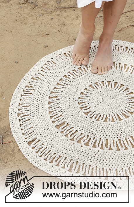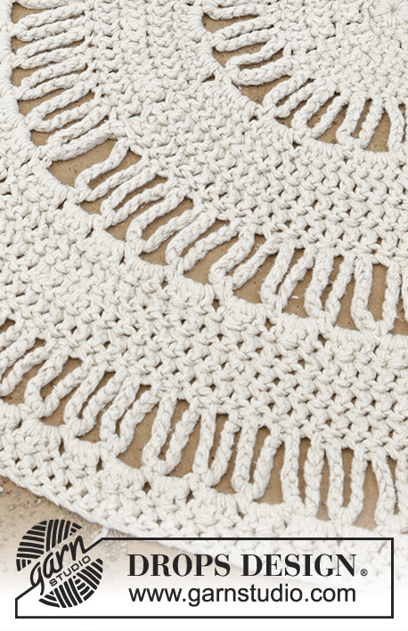 Runder Teppich mit Stabmasken und Lochmuster, in 3 Fäden DROPS Paris gehäkelt