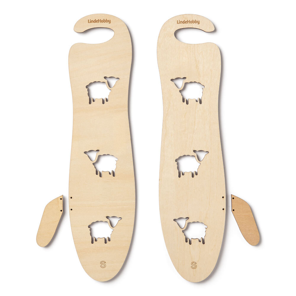 Praktische Handschuhspanner aus Sperrholz, ideal zum Formen und Trocknen gestrickter Handschuhe. Das Produkt wird als Set in den Größen Small, Medium und Large geliefert.