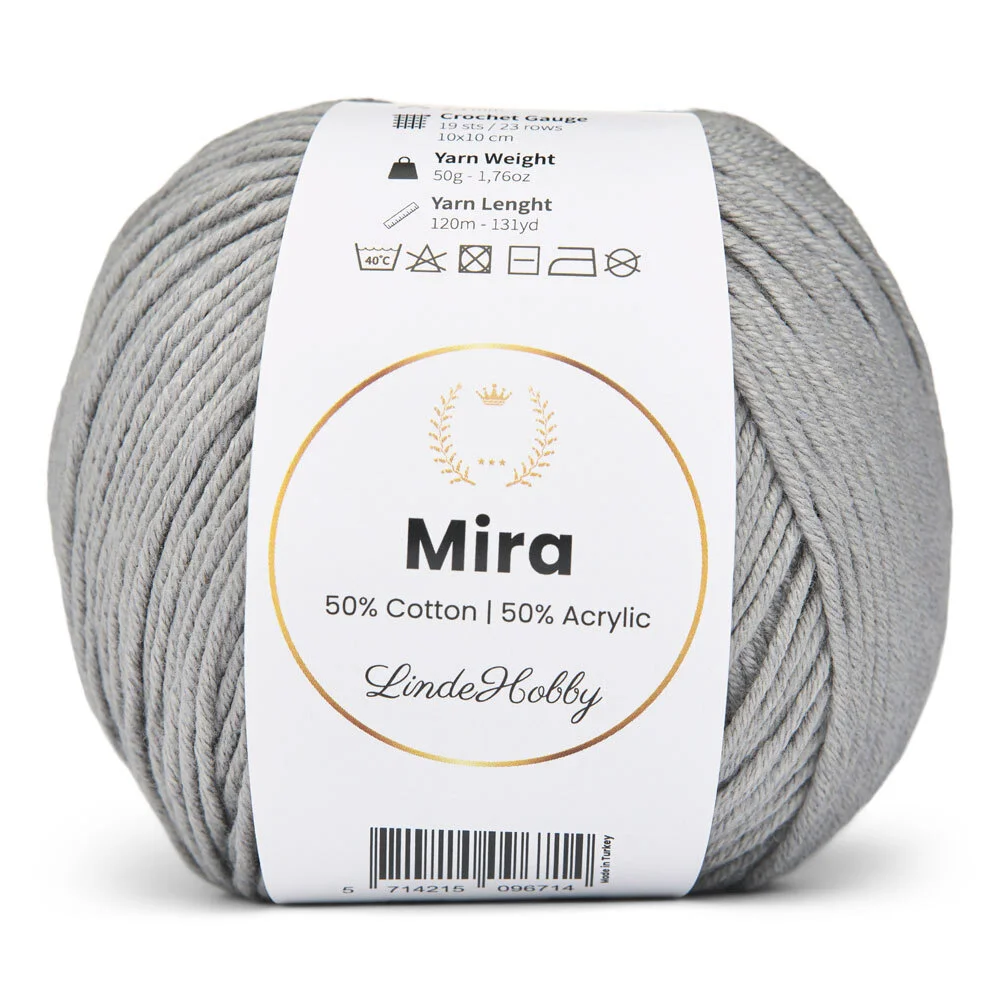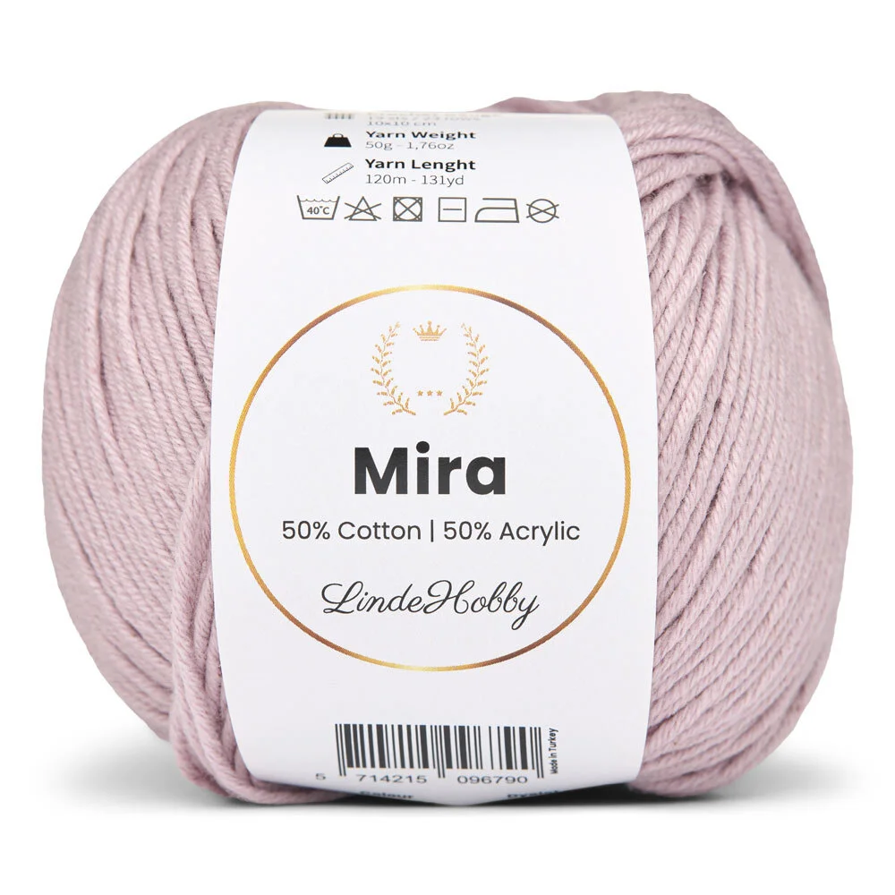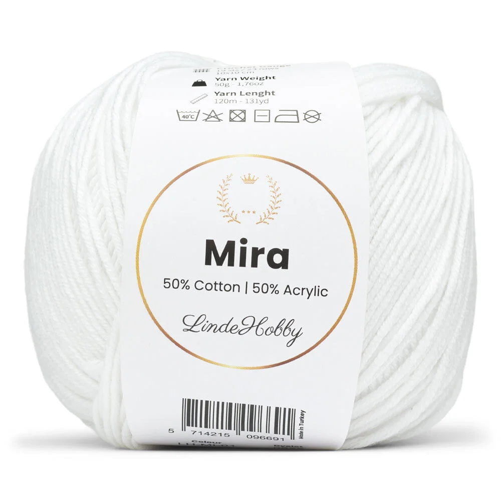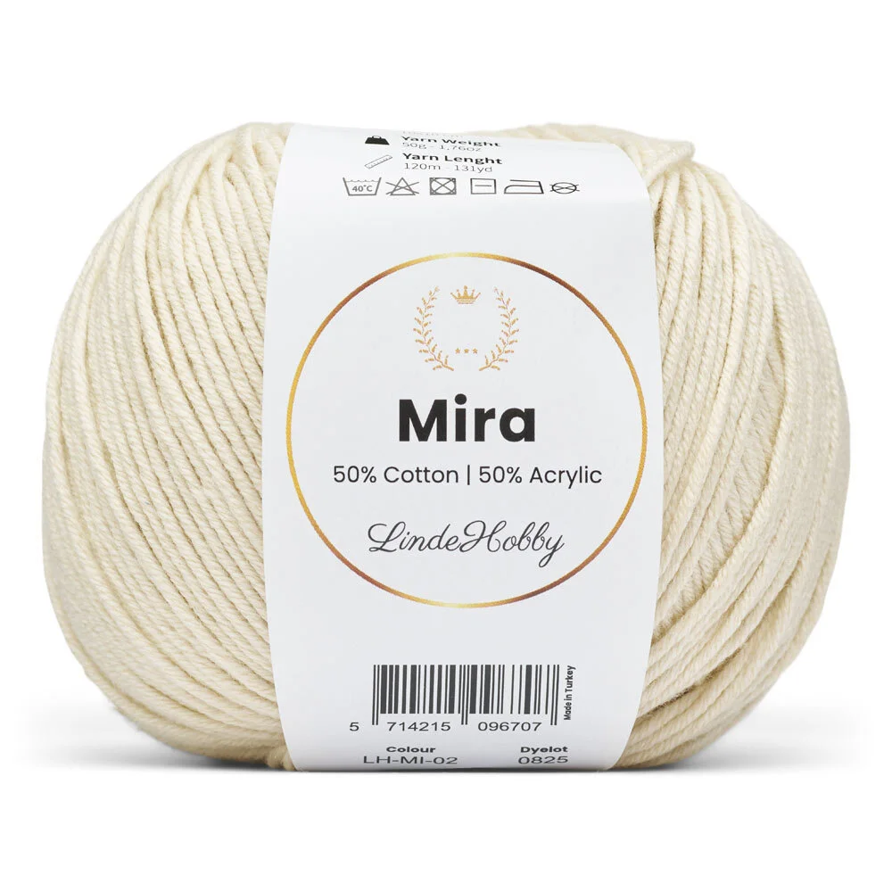 LindeHobby Mira ist ein einfarbiges Qualitätsgarn in einer sorgfältig abgestimmten Mischung aus 50% Baumwolle und 50% Acryl. Die Kombination ergibt ein leichtes, weiches und strapazierfähiges Ergebnis, das sich angenehm direkt auf der Haut anfühlt. Das Garn behält seine Weichheit auch nach häufigem Waschen und sorgt mit seiner Struktur für ein gleichmäßiges und klares Maschenbild.