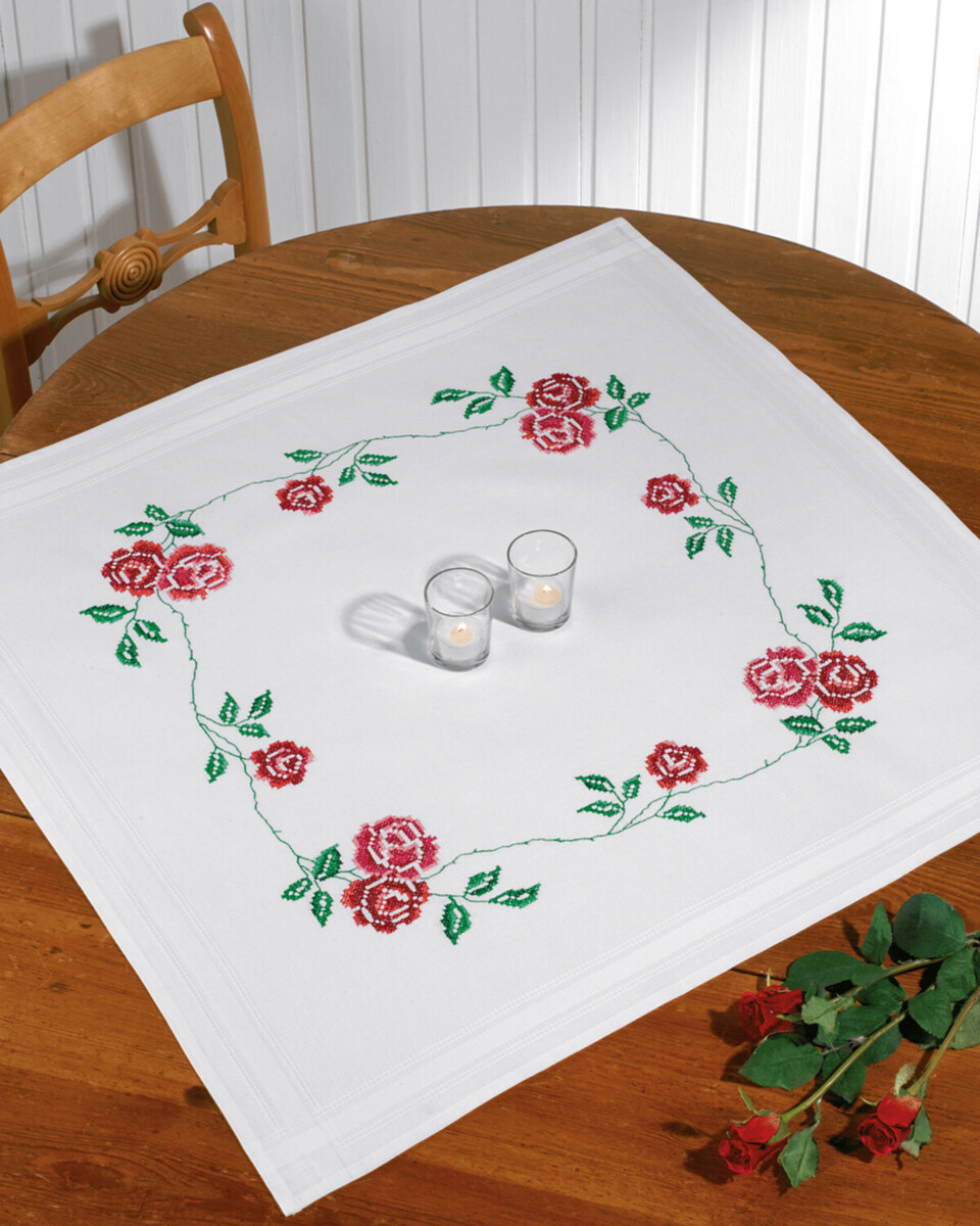 Erleben Sie die zeitlose Schönheit blühender Rosen mit diesem bezaubernden Stickset, das die Eleganz der Natur in Ihr Zuhause bringt. Mit einer zarten Palette von 9 Farben aus DMC Mouliné-Garn und dem präzisen Kreuzstichdesign bildet dieses Kunstwerk einen romantischen und anspruchsvollen Ausdruck auf weißer 100% Baumwolle. Perfekt für alle, die klassische Ästhetik mit einem künstlerischen Touch lieben.