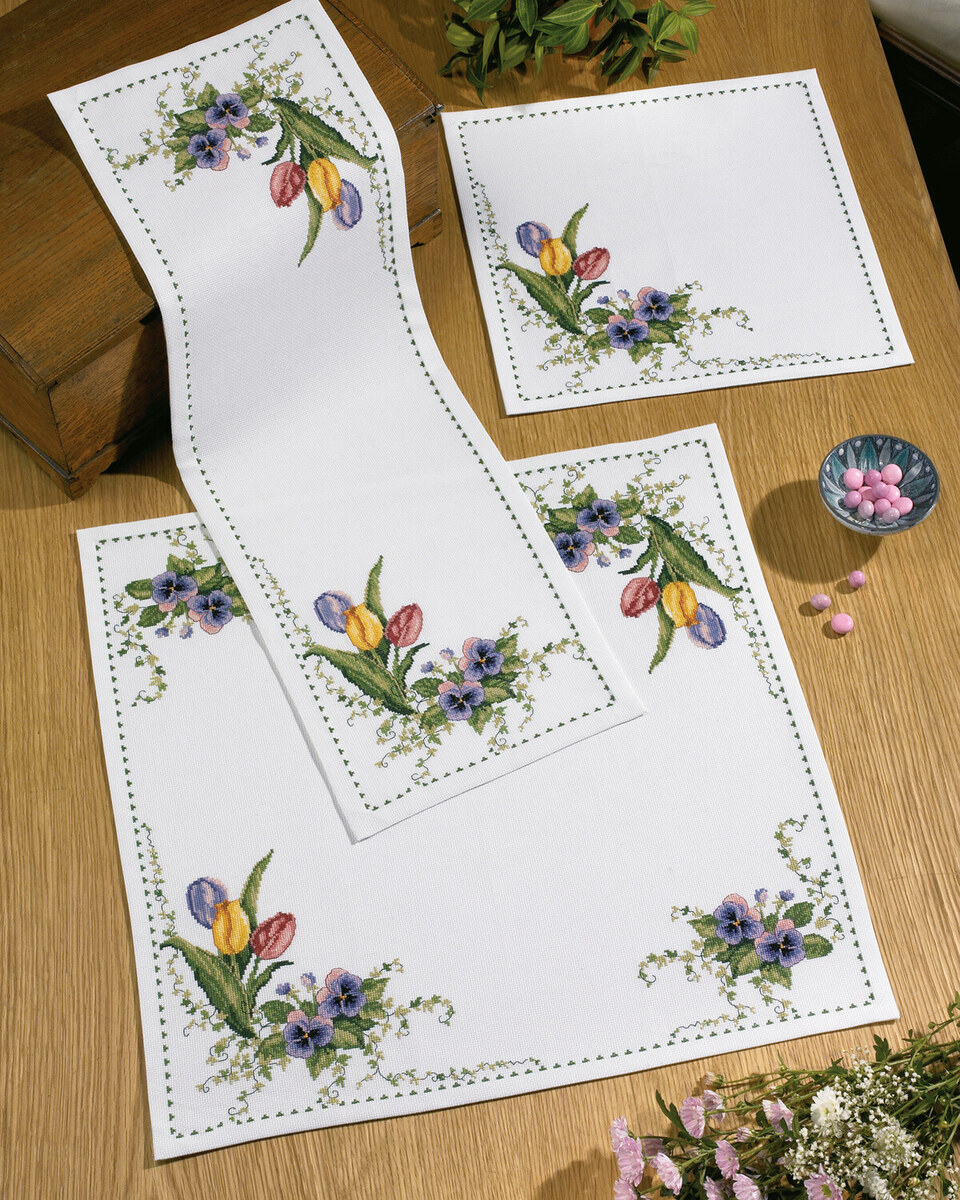 Laden Sie den Frühling mit diesem wunderschönen Stickset ein. "3 Tulpen" präsentiert drei elegante und farbenfrohe Tulpen in voller Blüte, perfekt eingerahmt vom klaren weißen Aida-Stoff. Dieses 26x79 cm Kunstwerk verbindet Tradition und Schönheit und ist ideal für Einsteiger und erfahrene Sticker.
